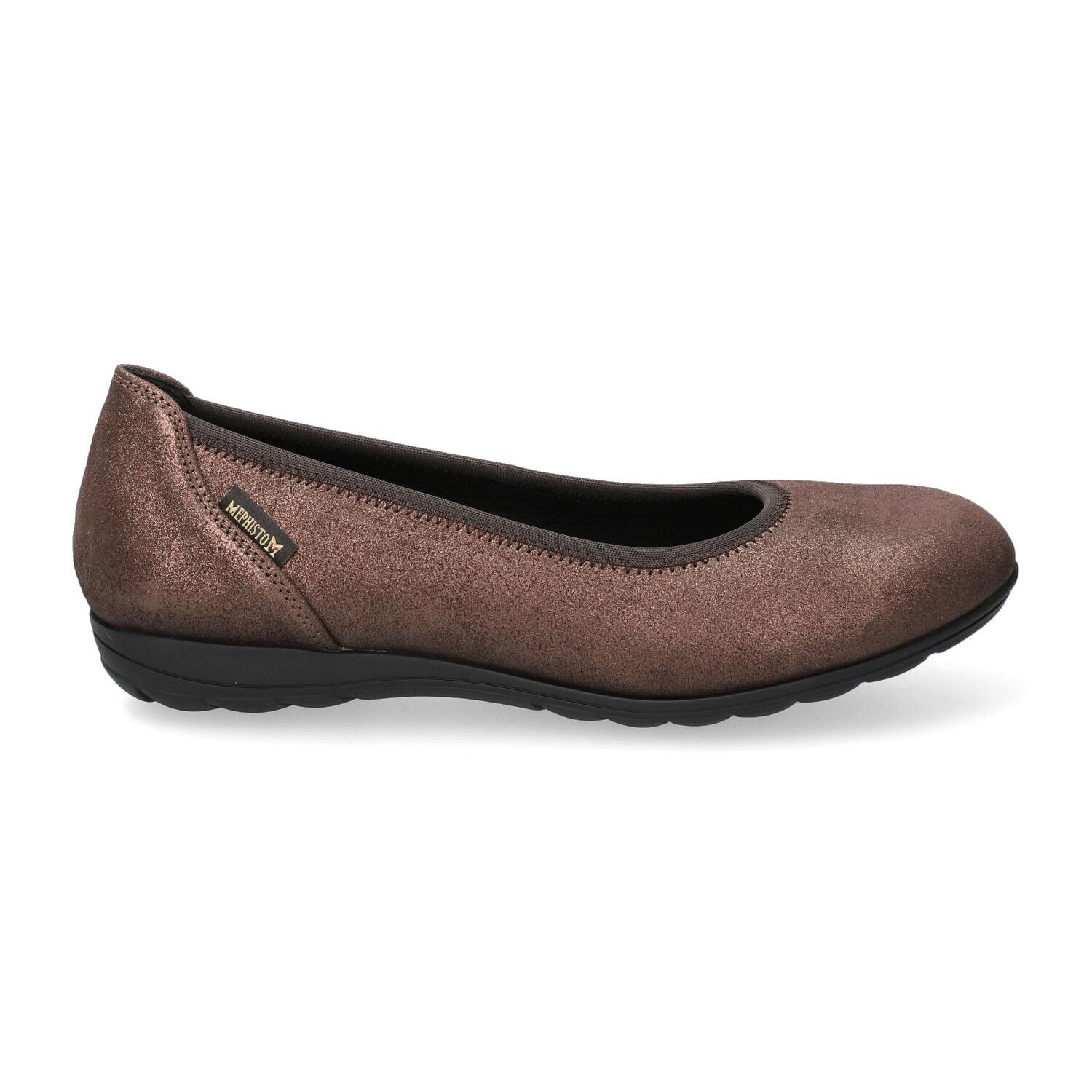 Mephisto-shop Ballerines Femme – modèle Emilie marron La chaussure ballerine femme, modèle Emilie, dispose d'un bout rond élégant ainsi qu'un talon de 2 cm.