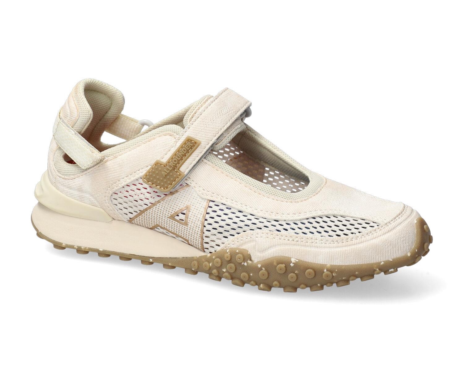 Découvrez la chaussure ALLROUNDER pour femme, un modèle Mary Jane sportif idéal pour vos aventures. Son coloris beige sable intemporel et son design polyvalent s'adaptent à toutes vos tenues. La tige en mesh respirant assure une ventilation optimale, tandis que la sangle ajustable à scratch (Velcro) garantit un maintien parfait et personnalisé. Profitez d'un confort inégalé grâce à sa construction légère. Sa semelle extérieure robuste à crampons offre une adhérence exceptionnelle sur diverses surfaces, faisant de cette chaussure l'alliée idéale pour la marche, les voyages ou les activités de plein air quotidiennes. L'équilibre parfait entre style et performance.