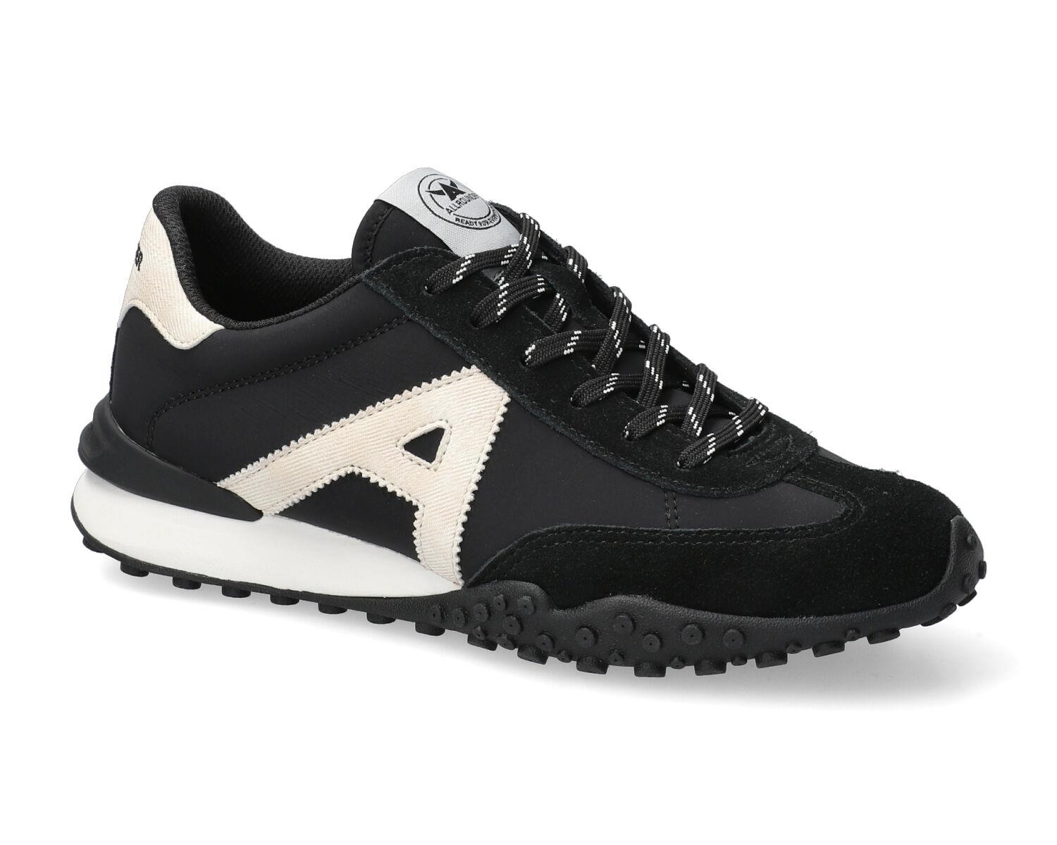Affirmez votre style unique avec cette sneaker tendance conçue pour le quotidien. Arborant une tige harmonieuse en suède noir de qualité et textile technique résistant, elle est sublimée par des empiècements crème audacieux, notamment le logo "A" distinctif et le talon. Profitez d'un confort exceptionnel grâce à sa semelle intermédiaire blanche amortissante, idéale pour de longues journées. La semelle extérieure crantée noire, garantissant une adhérence fiable, s'adapte à diverses surfaces urbaines. Ses lacets bicolores et le badge de languette "ALLROUND READY TO WEAR" complètent son allure. Cette basket polyvalente est le choix parfait pour un look streetwear raffiné ou un ensemble casual chic.