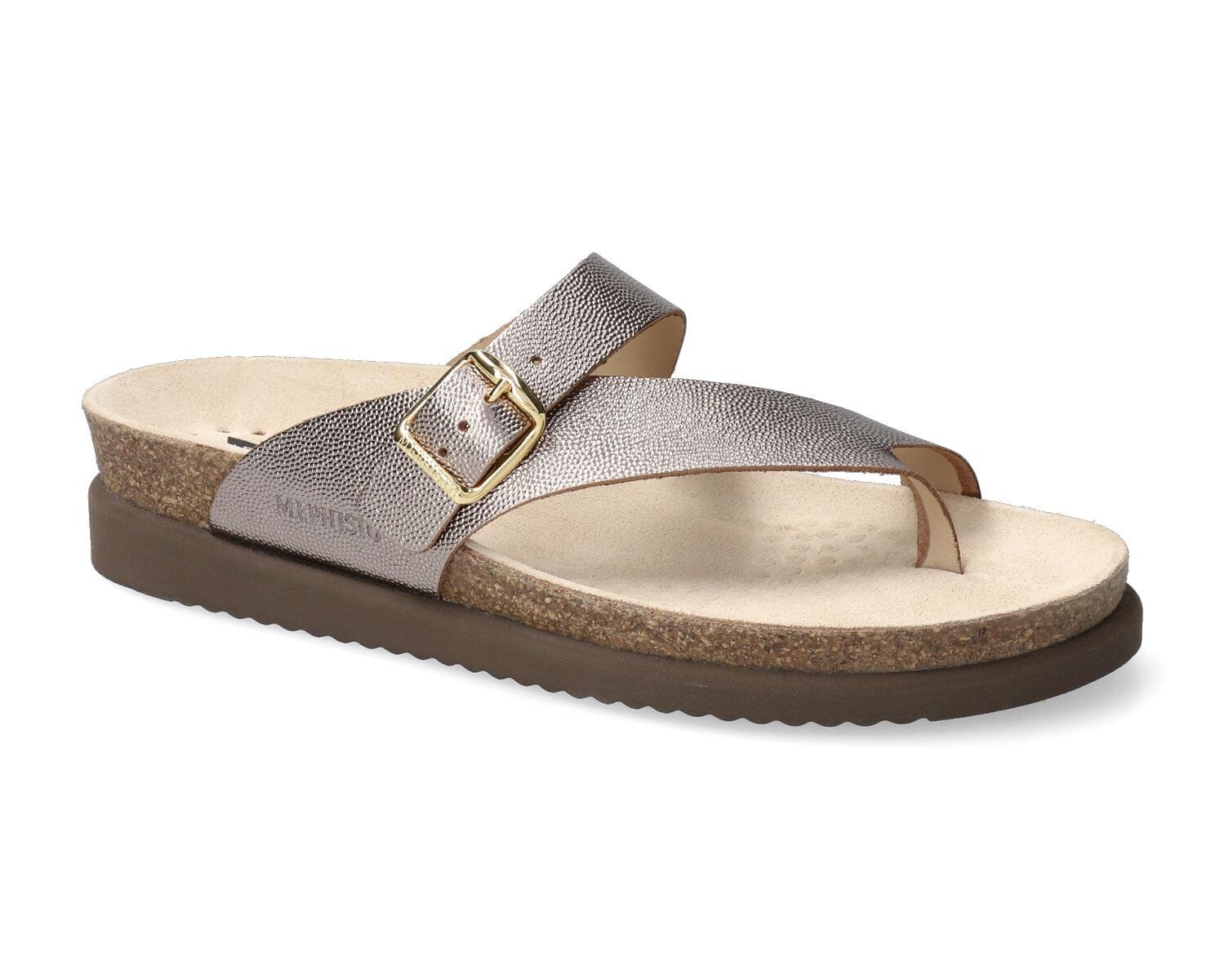 Sublimez votre look estival avec la sandale Mephisto à entre-doigt, une pièce maîtresse alliant style et confort. Confectionnée en cuir grainé métallisé d'une teinte platine raffinée, elle apporte une touche chic et tendance à toutes vos tenues. La boucle ardillon dorée réglable assure un maintien personnalisé et élégant. Bénéficiez du confort légendaire Mephisto grâce à sa semelle anatomique en liège et cuir velours, conçue pour un amorti optimal et un soutien parfait de la voûte plantaire. Idéale pour vos journées en ville ou vos évasions en vacances, cette tong sophistiquée est l'alliée de votre bien-être au quotidien.