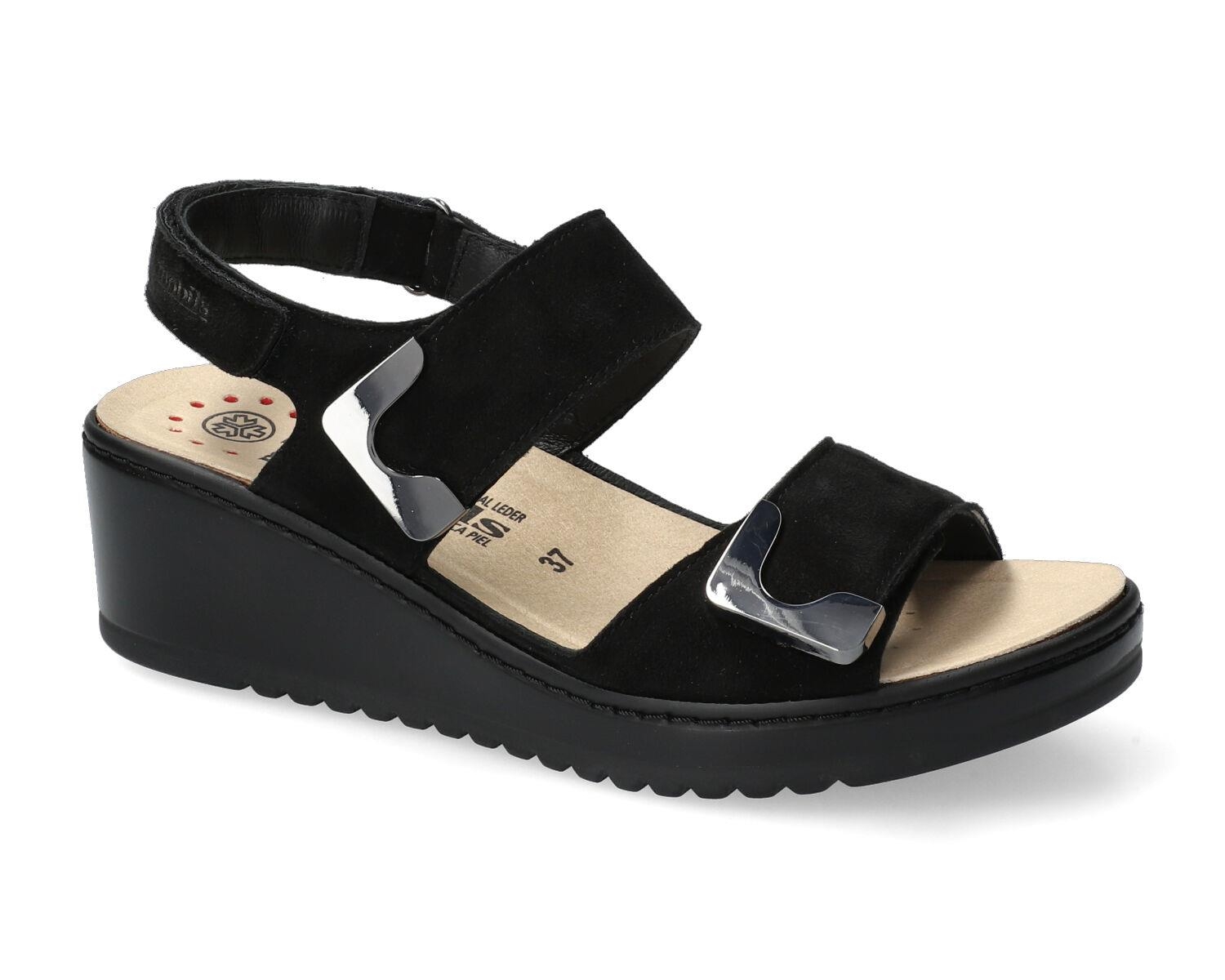 Découvrez nos sandales compensées noires élégantes, conçues pour un confort optimal et un style intemporel. Fabriquées avec une tige en cuir suédé doux et une semelle intérieure anatomique en cuir véritable, elles garantissent un bien-être durable à chaque pas. La bride cheville réglable par scratch assure un maintien parfait, tandis que les détails métalliques modernes sur les brides avant ajoutent une touche chic et raffinée. Idéales pour toutes vos tenues estivales, ces sandales polyvalentes offrent une marche stable grâce à leur talon compensé confortable et leur semelle adhérente. L'alliance parfaite entre mode et fonctionnalité pour un look sans effort.