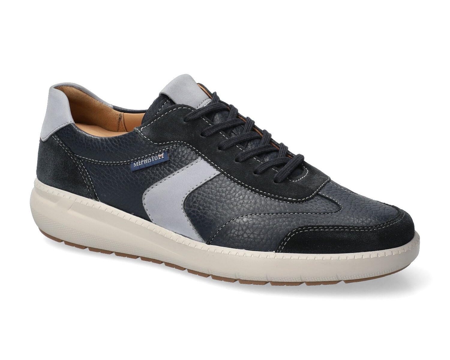 Optez pour l'élégance décontractée avec la basket homme Mephisto en cuir grainé bleu marine et daim. Ce modèle se distingue par sa qualité premium et son confort inégalé, signature de la marque. Idéale pour le quotidien urbain, elle présente des empiècements contrastés de daim souple et une bande latérale gris clair stylisée. Les surpiqûres fines soulignent sa fabrication soignée. Grâce à sa semelle innovante, profitez d'un amorti optimal et d'une marche sans fatigue. Un choix polyvalent pour un look chic et un bien-être durable.