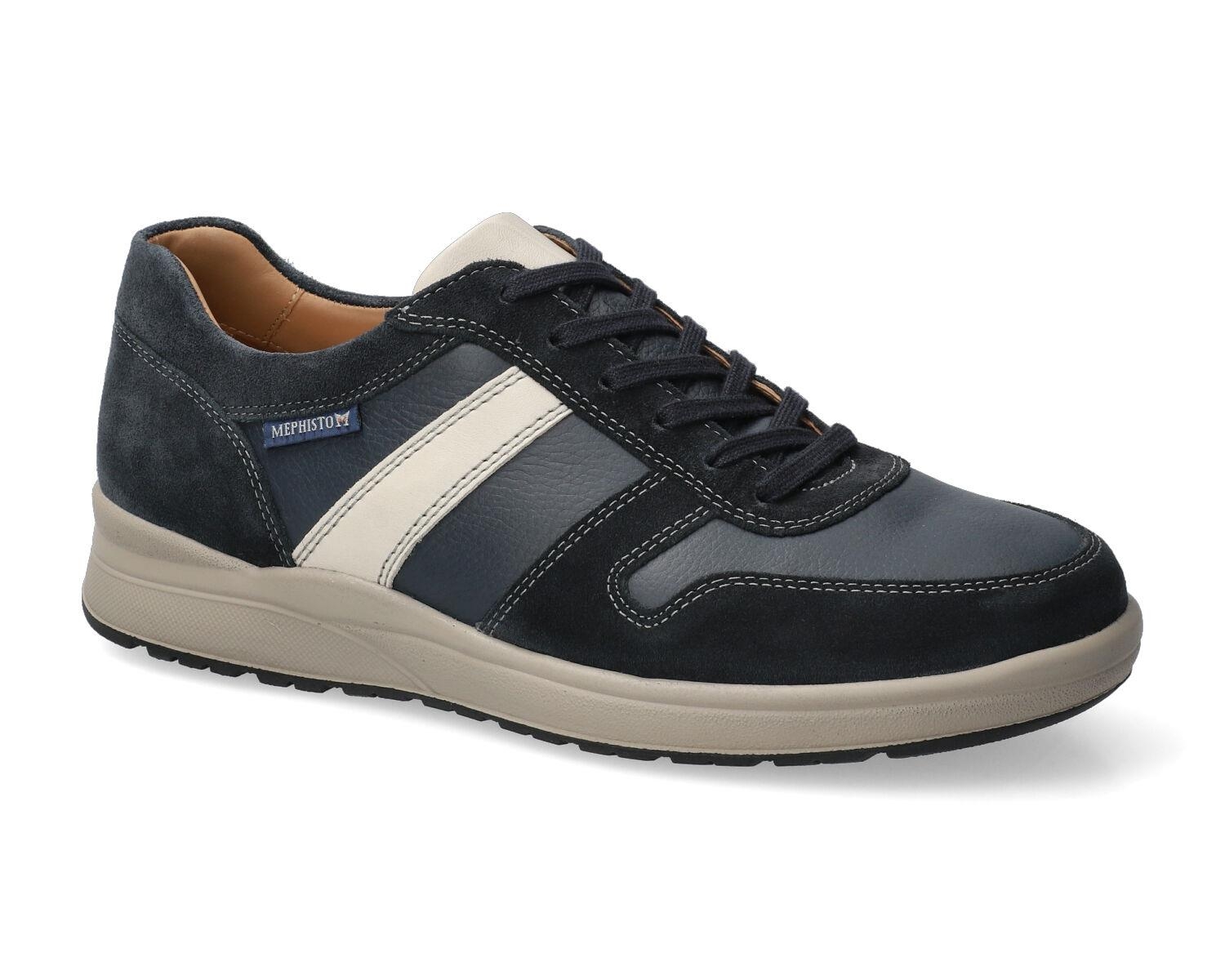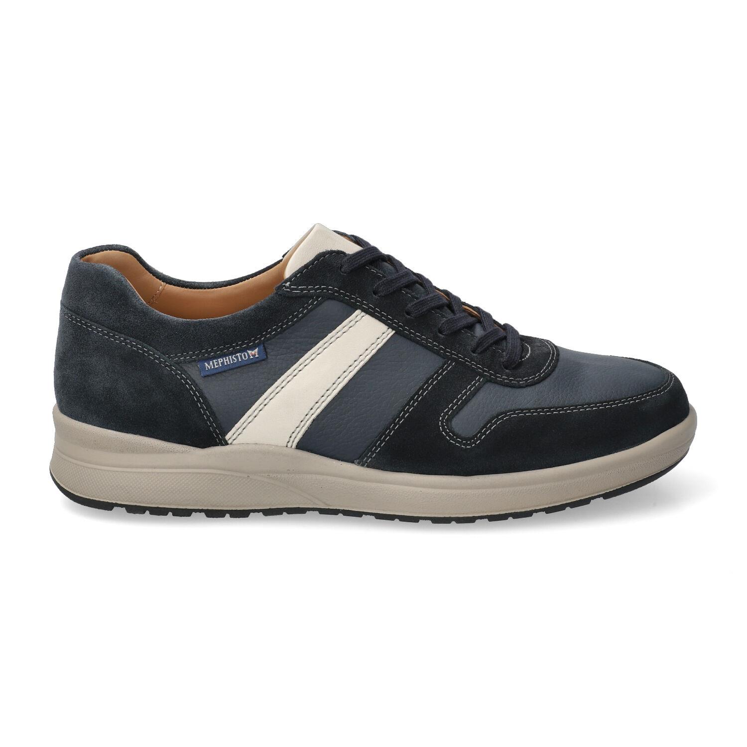 Découvrez l'élégance décontractée avec cette sneaker Mephisto pour homme, une alliance parfaite de style et de confort au quotidien. Ce modèle polyvalent arbore une combinaison sophistiquée de cuir lisse bleu marine et de daim souple de haute qualité. Les bandes latérales contrastantes beiges et les accents bleu clair ajoutent une touche moderne et dynamique. Conçues pour le bien-être, ces chaussures lacées Mephisto garantissent un confort optimal et un soutien exceptionnel, idéal pour la marche prolongée. Leur semelle extérieure beige clair offre une excellente adhérence et une durabilité supérieure. Parfaites pour compléter un look sport-chic ou pour vos tenues urbaines.